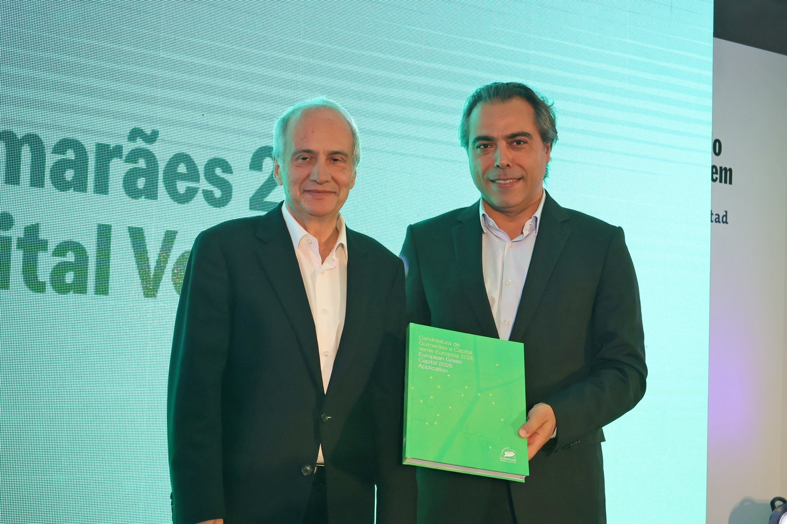 O evento terminou com o gesto simbólico da entrega do livro da candidatura de Domingos Bragança a Ricardo Araújo, um momento de transição que reflete a continuidade de uma visão comum: fazer de Guimarães uma cidade-modelo de sustentabilidade.