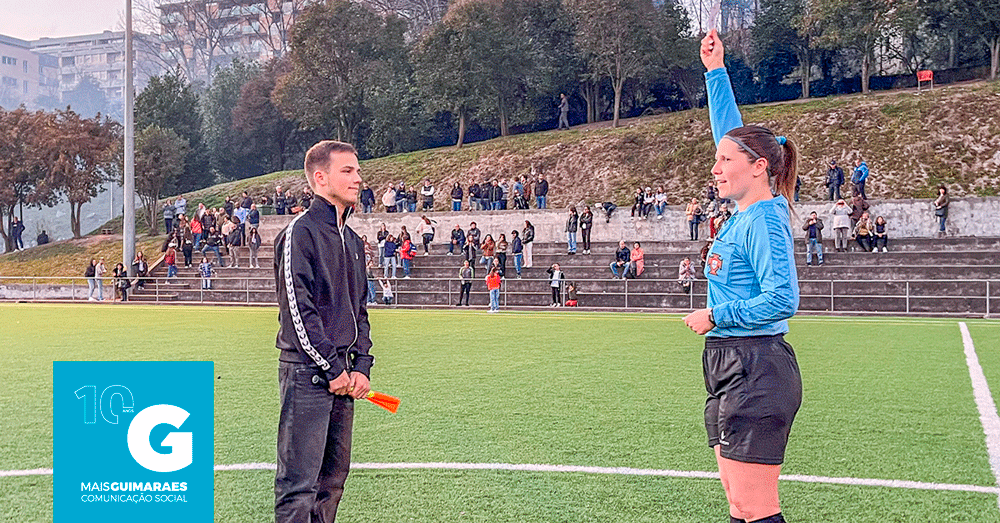 No final da partida entre as equipas femininas do Vitória e CF Benfica.