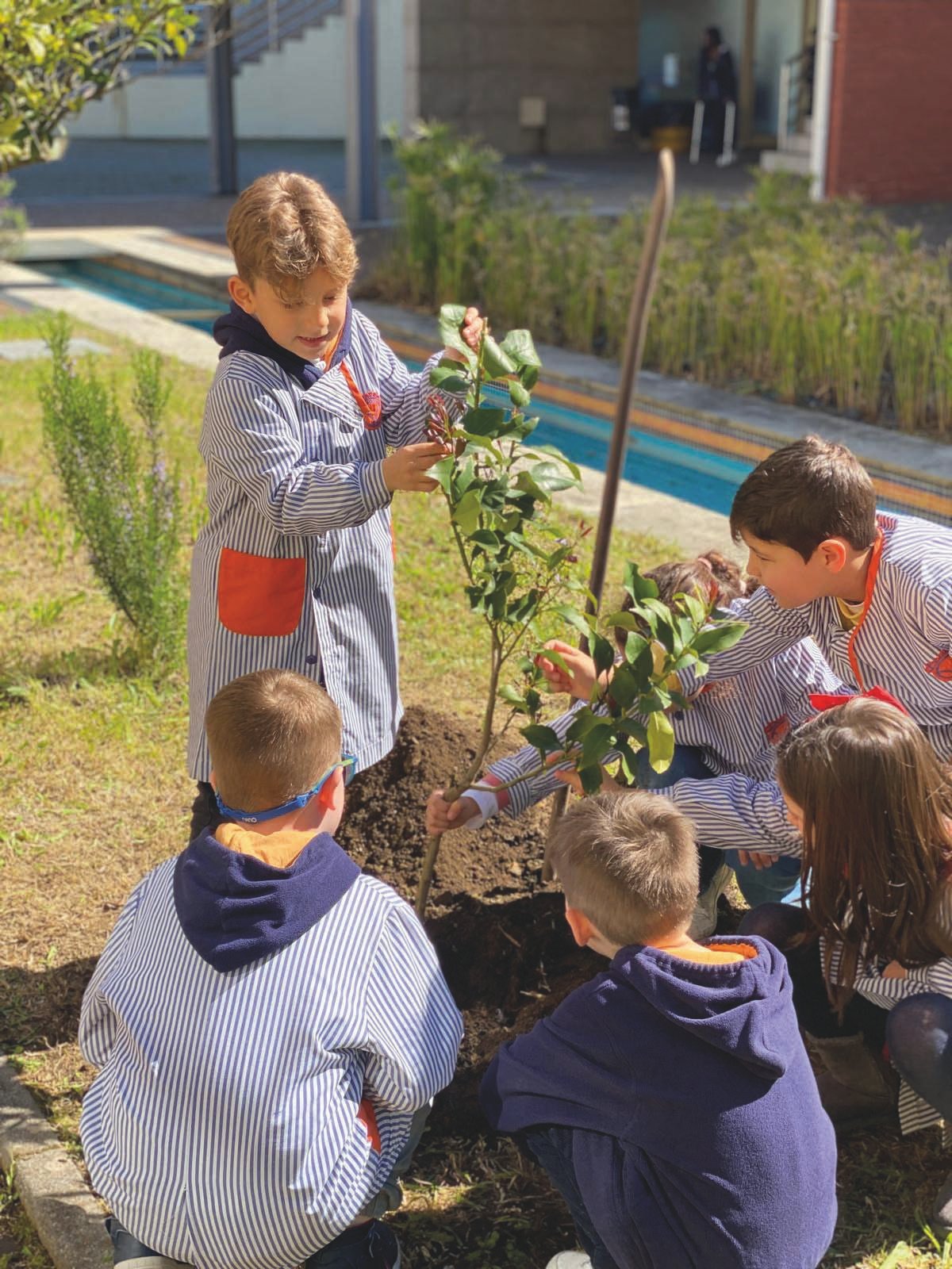 A ligação à natureza e à prática pedagógica ativa é igualmente valorizada, nomeadamente através da horta biológica, onde os alunos aprendem através da experiência direta, desenvolvendo competências de responsabilidade, sustentabilidade e respeito pelo meio envolvente.