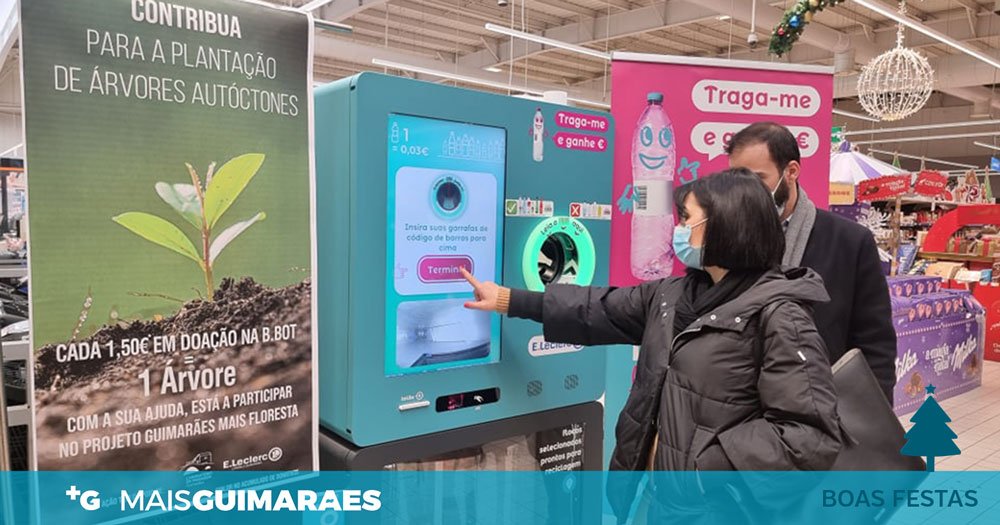 Máquina pioneira em Portugal com a capacidade de 3.000 garrafas de plático, com ou sem tampa, e que as tritura.